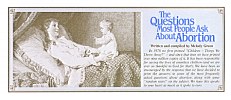 In 1978 we first printed "Children - Things We Throw Away?" and since that time we have printed over nine million copies of it. It has been responsible for saving the lives of countless children (and we are ever so thankful to God for that!).We have been so encouraged by the response that we have decided to print the answers to some of the most frequently asked questions about abortion, along with some "random notes" on the subject. We hope this speaks to your heart as much as it spoke to ours.